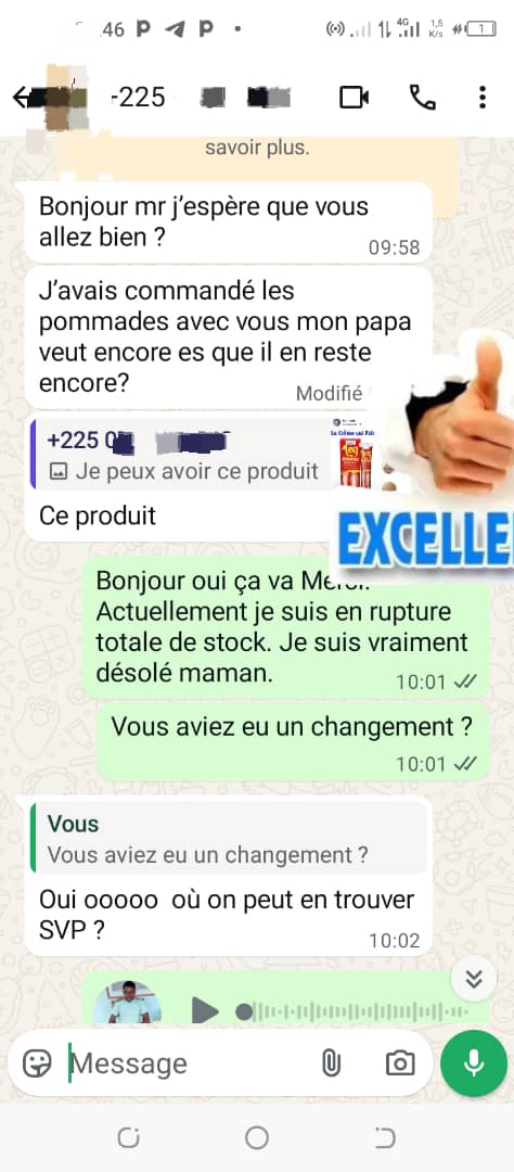| Garanties et confiance | Livraison rapide : Commandez aujourd’hui, recevez sous 24/48h partout en Côte d’Ivoire. Paiement sécurisé : Protection totale de vos informations lors du paiement. Satisfait ou remboursé : Commandez sans risque grâce à notre politique de remboursement intégral. |